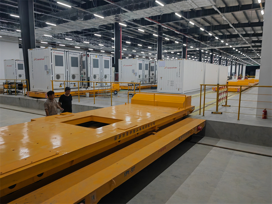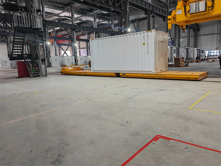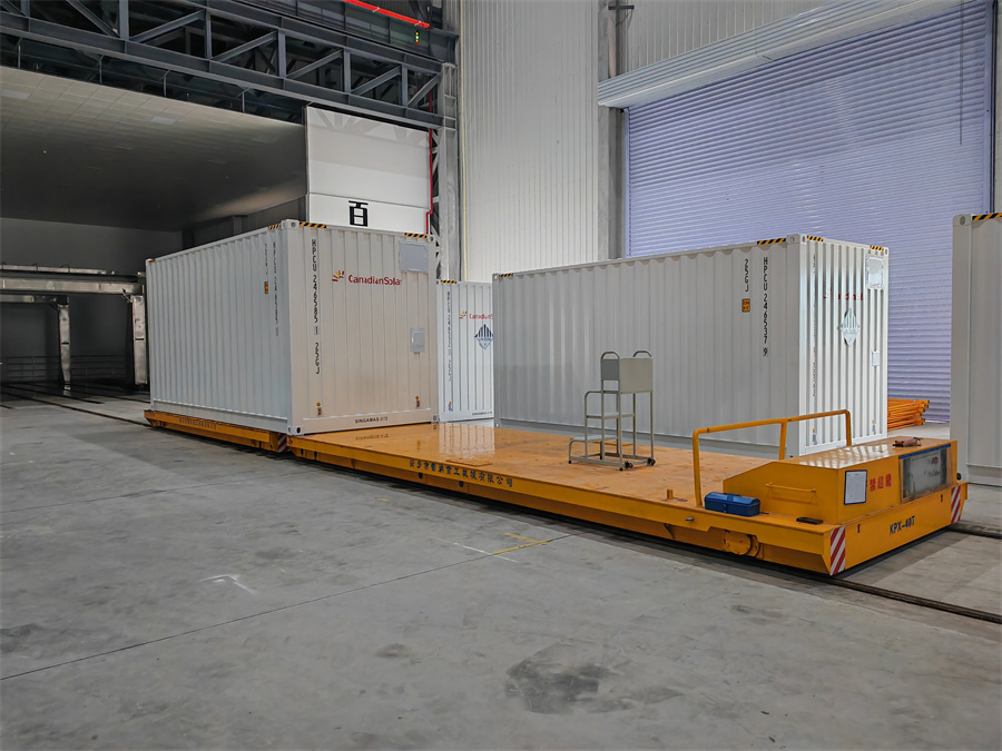 蓄電池供電軌道臺車可以和儲能集裝箱完美適配,根據(jù)集裝箱尺寸大小來定做軌道車臺面,同時(shí)有多種供電方式可以選擇。